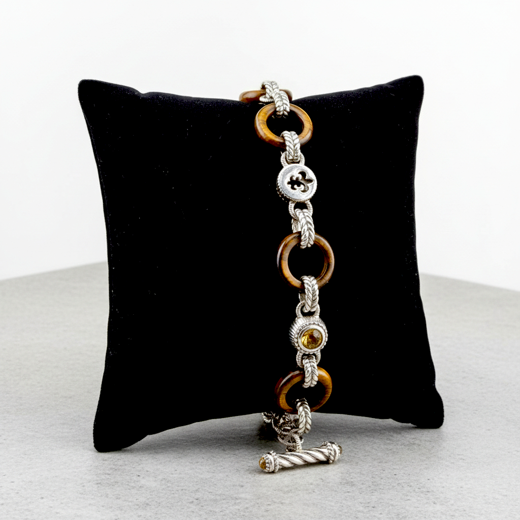 Judith Ripka Sterling Silver Tiger's Eye & Citrine Toggle Bracelet – 7"
