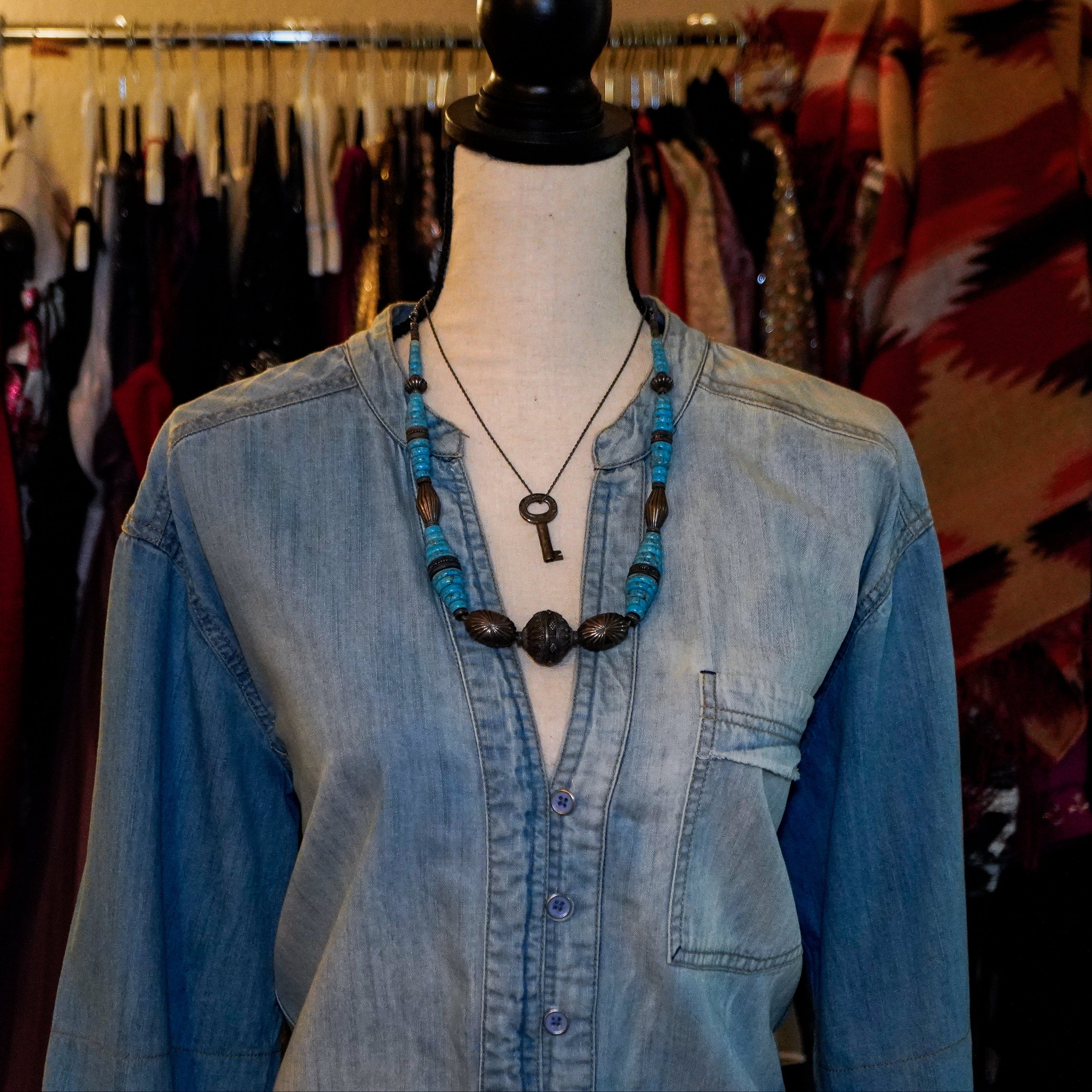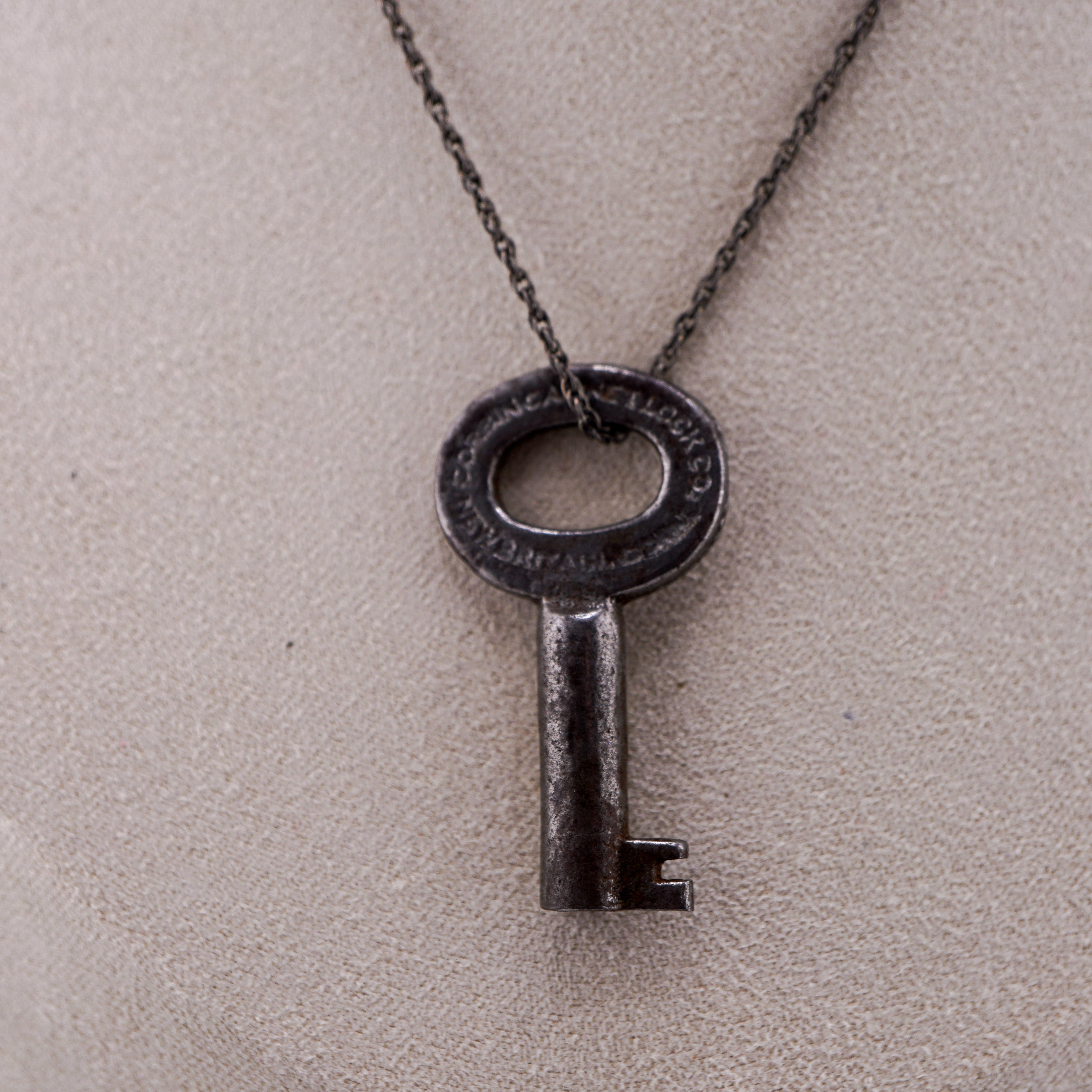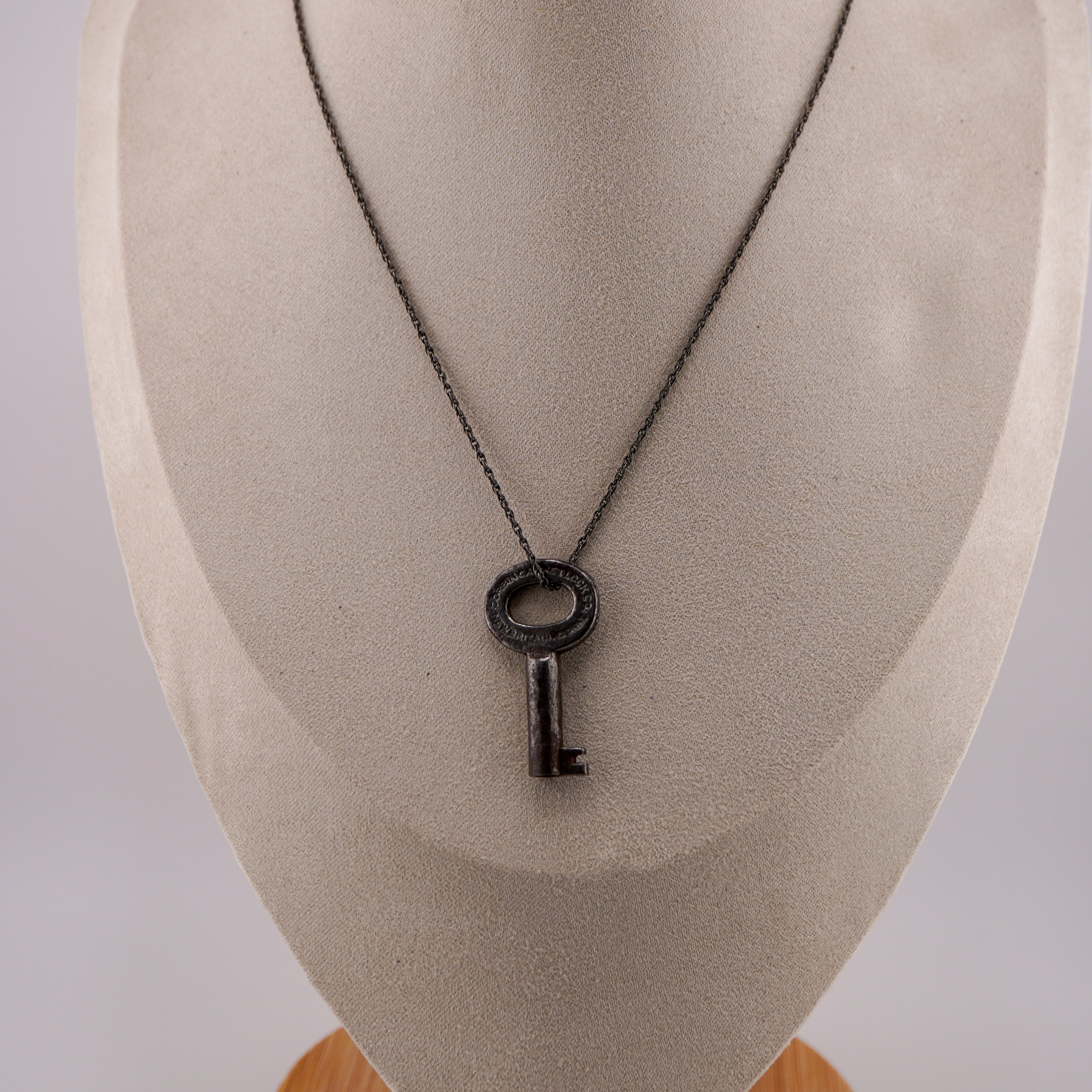 • Material: Antique steel key; sterling silver chain (marked 925)