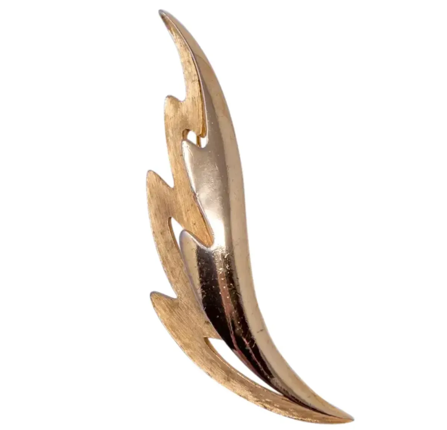 Crown Trifari Textured Gold Tone Stylized Split Leaf Brooch Vintage Jewelry