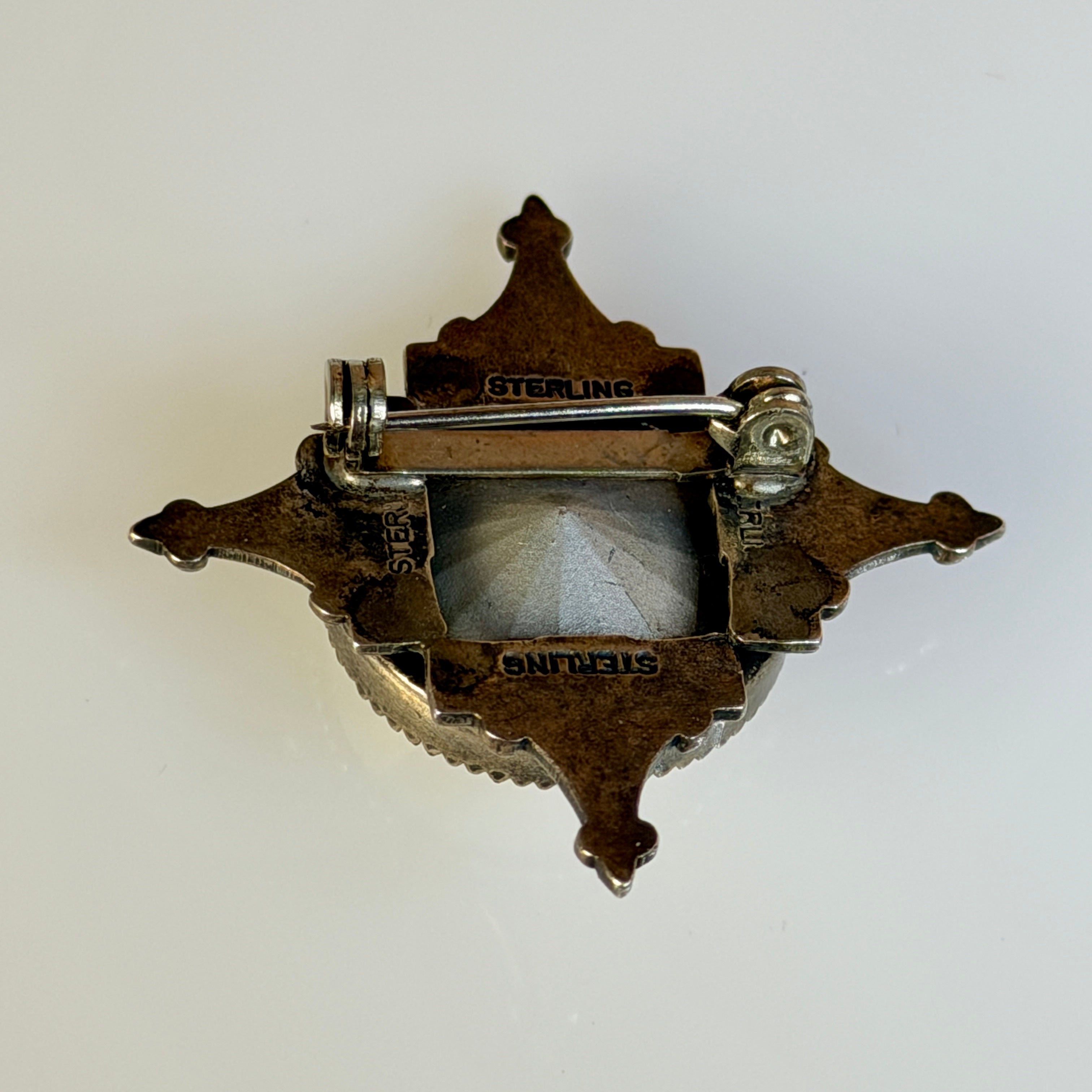 Worn on a blazer, dress, or scarf, this brooch delivers instant visual appeal—its iridescent sparkle acts as a focal point that enhances any ensemble. The durable sterling construction ensures lasting wear, while the distinctive silhouette and vintage cues make it a versatile piece for everyday styling or special occasions. A true conversation starter, it captures attention with classic charm and a touch of radiant, rainbow fire.