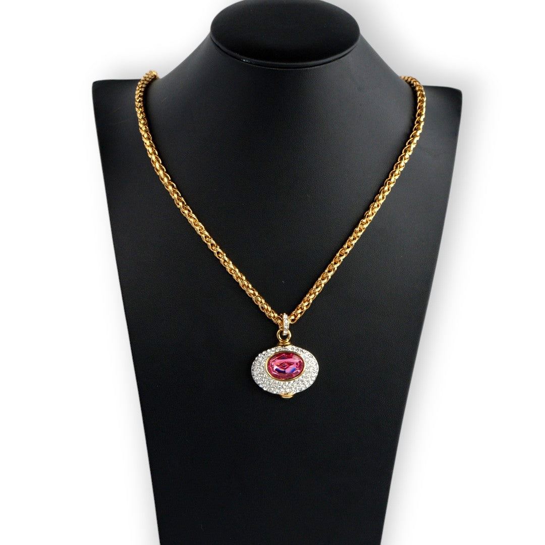 Nolan Miller Pink Crystal Goddess Necklace Reversible Pendant Glamour Collection