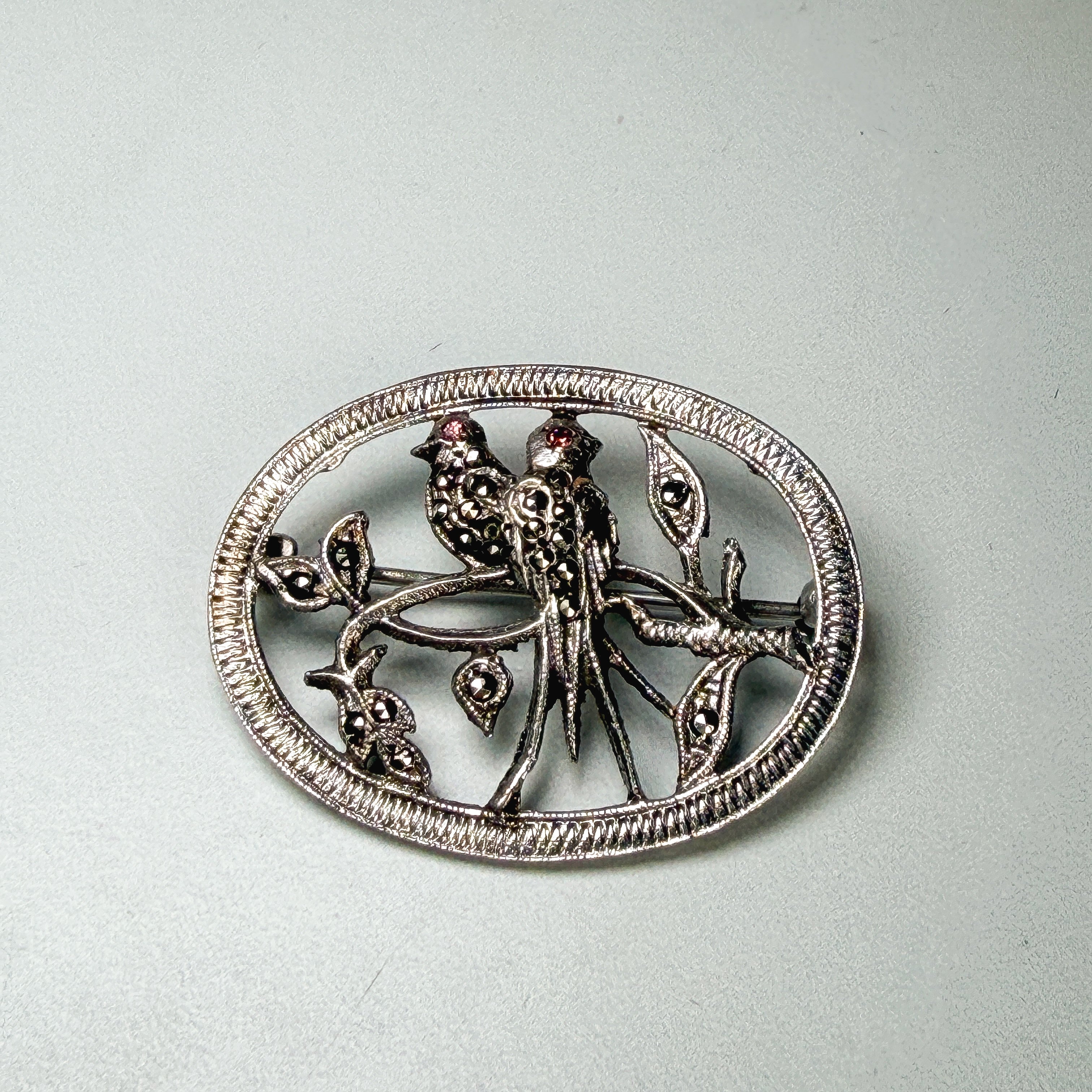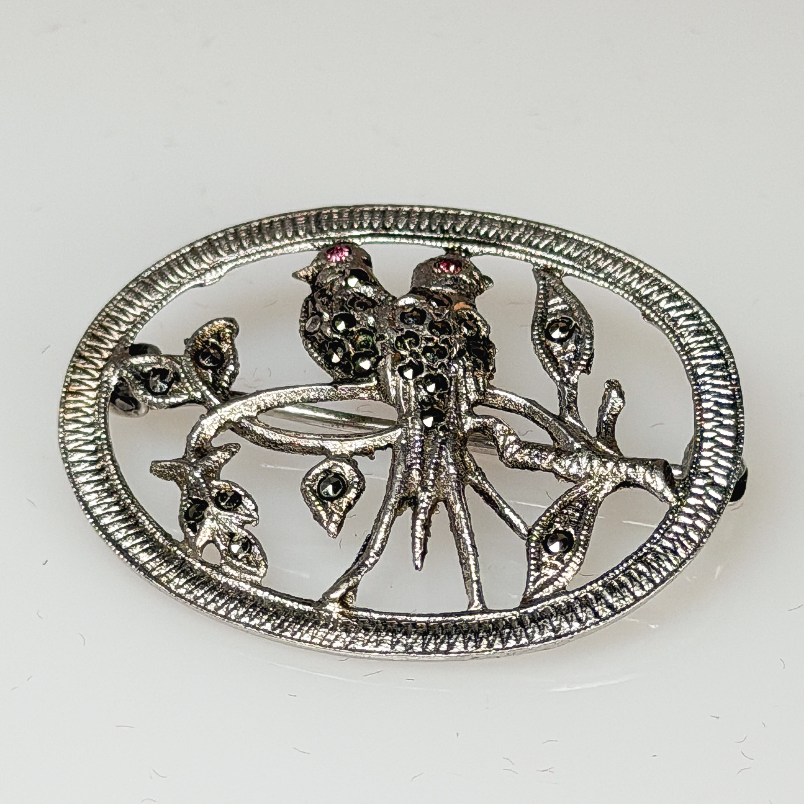 Sterling Marcasite Lovebirds Brooch