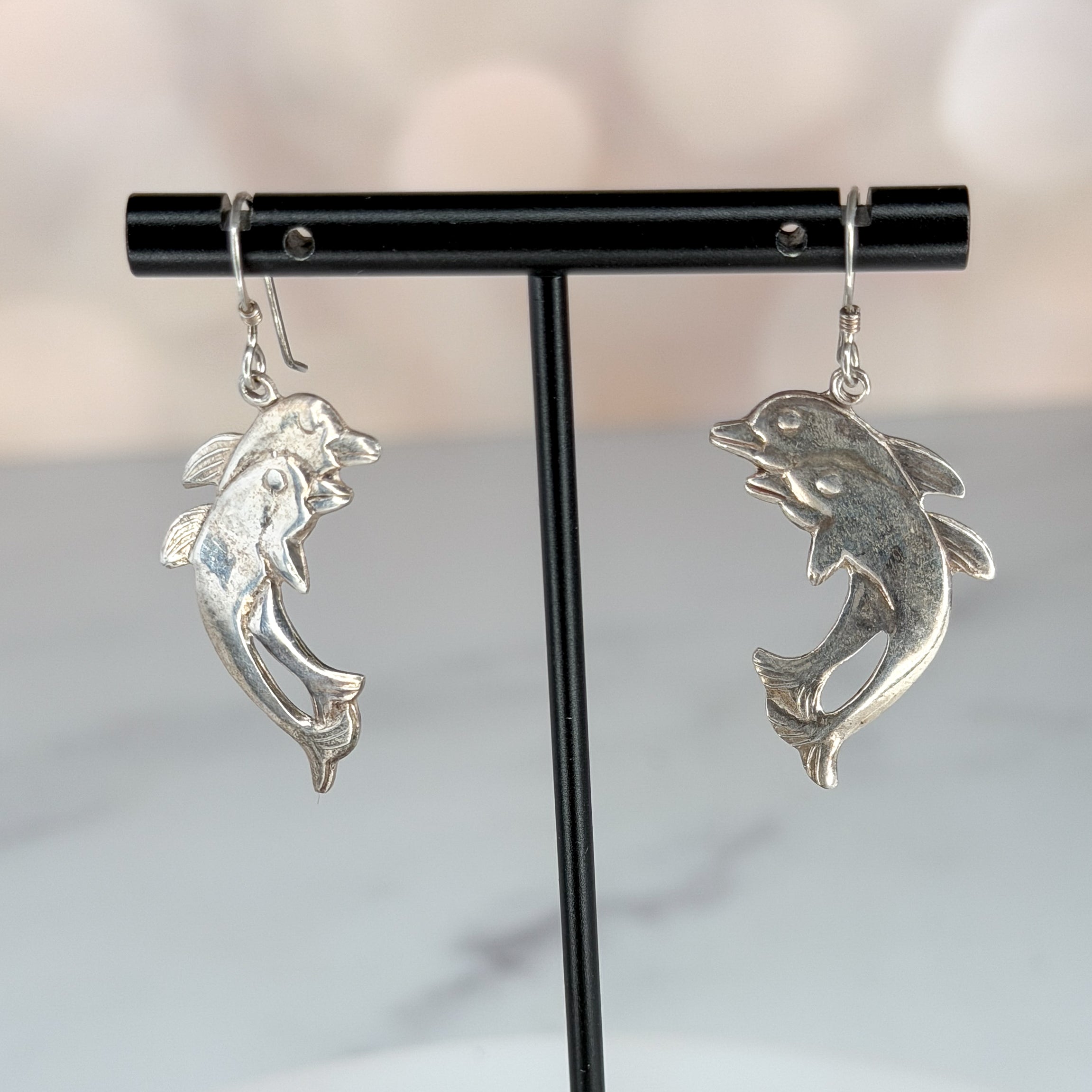 These earrings offer a joyful nod to ocean life while staying comfortably wearable. The dynamic motion of the dolphins creates a lively focal point, enhancing any ensemble with nautical flair. They make a thoughtful gift for someone who loves the sea, wildlife, or timeless silver jewelry, and they pair nicely with other silver accessories for a cohesive look.