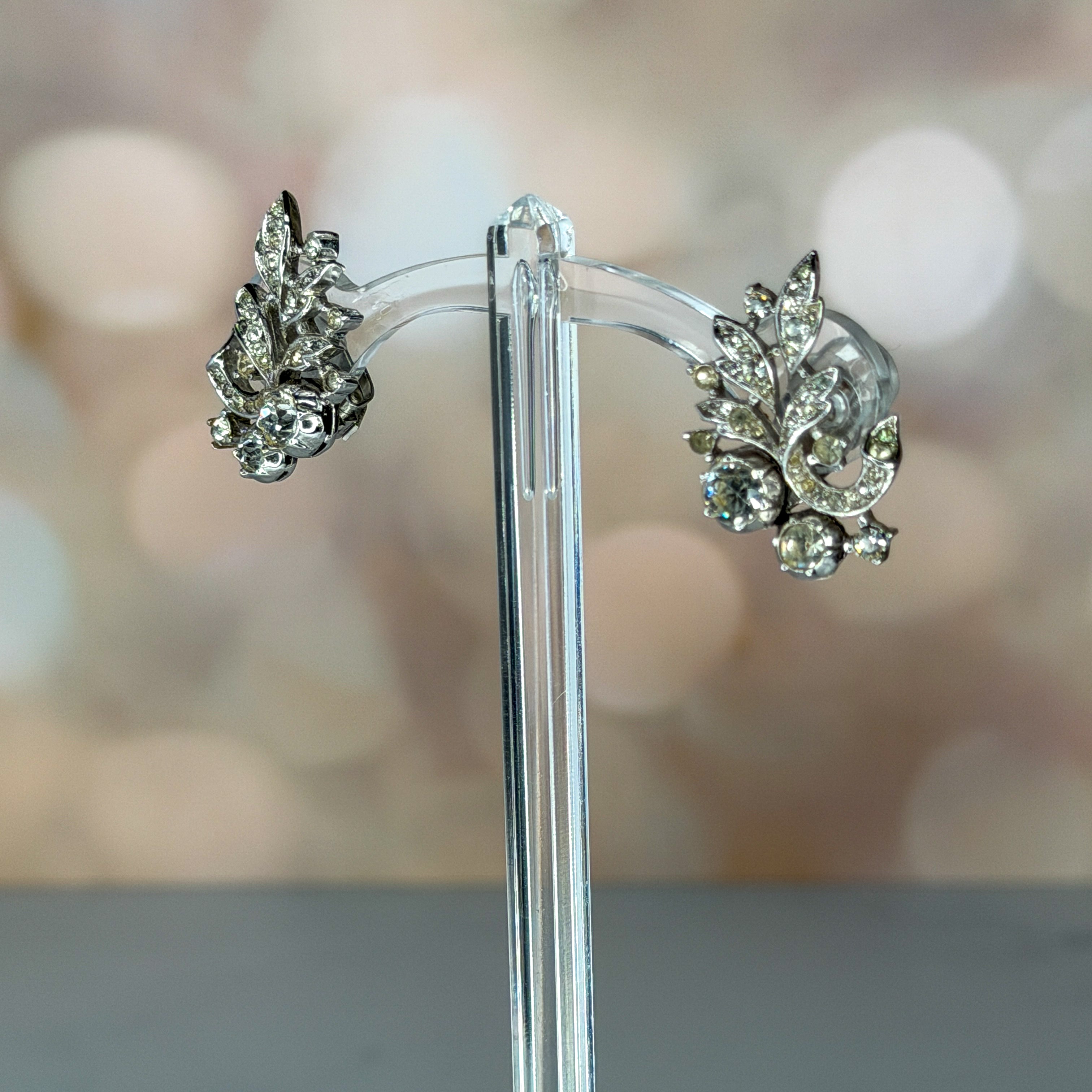Trifari Rhinestone Leaf Earrings
