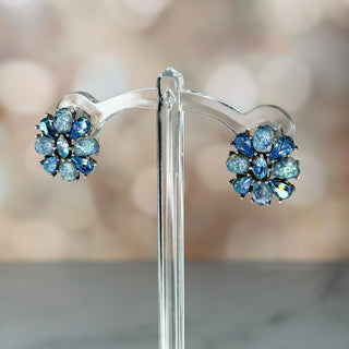 Rare Signed Trifari Blue Aurora Floral Earrings