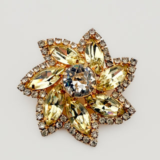 Vintage Weiss Starburst Rhinestone Brooch & Earring Set – Pale Yellow & Crystal