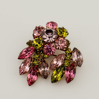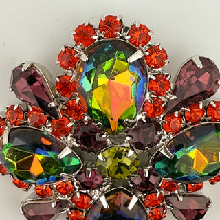 Attributed Juliana Rainbow Watermelon Rhinestone Brooch in Red, Green & Purple