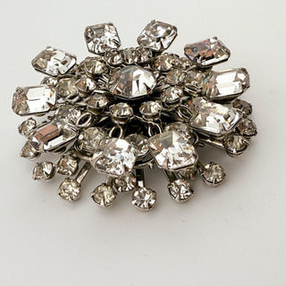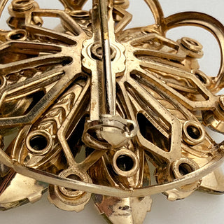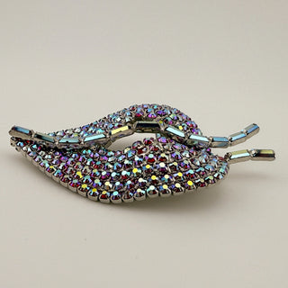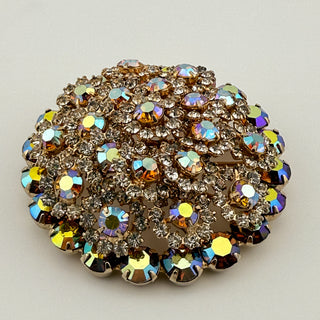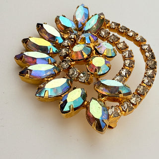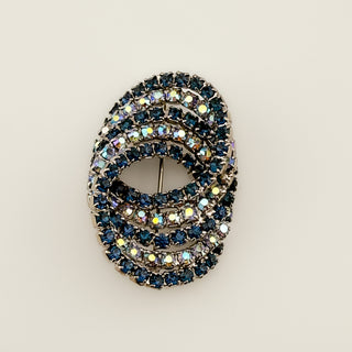 Vintage Kramer Layered Rhinestone Loop Brooch in Deep Blue and Aurora Borealis