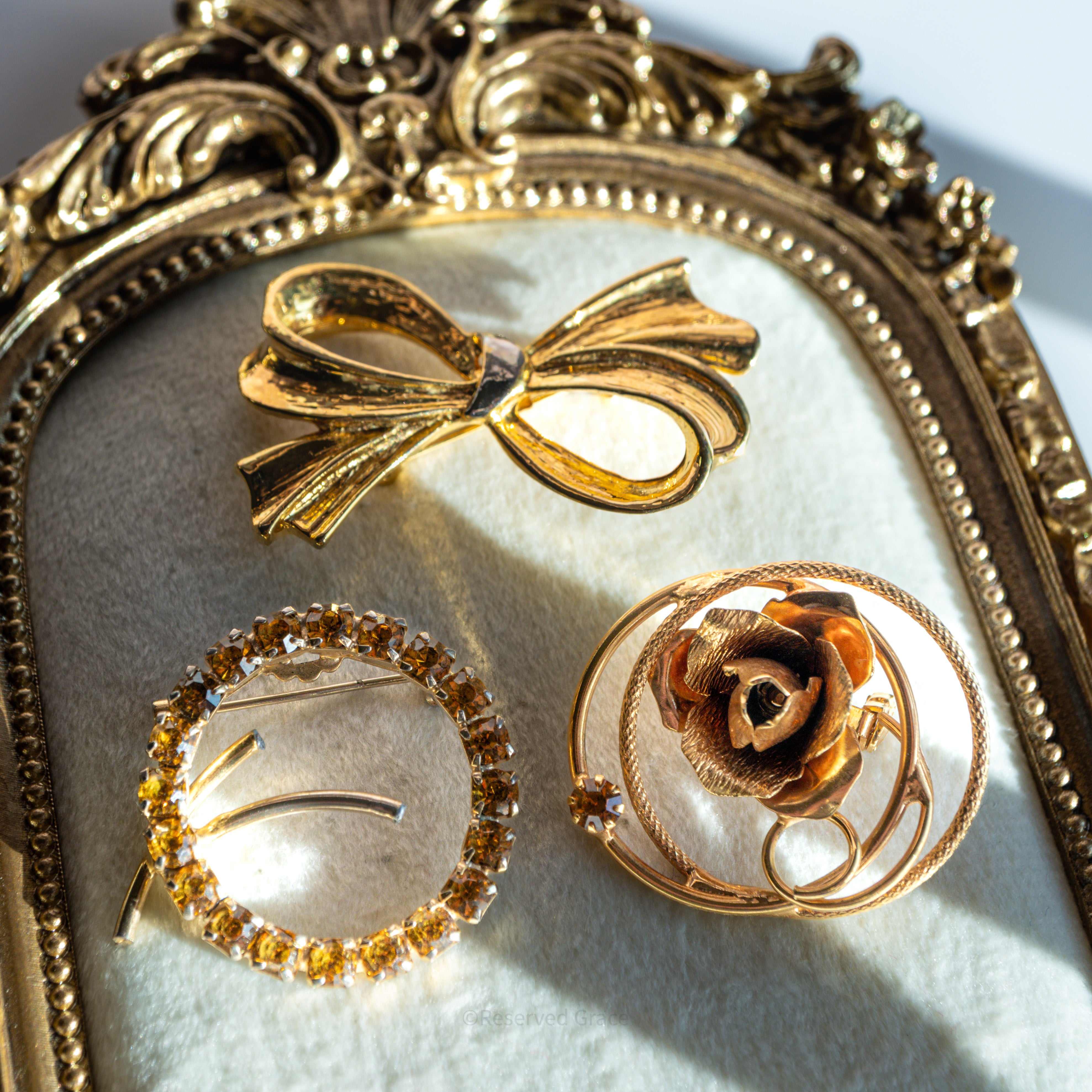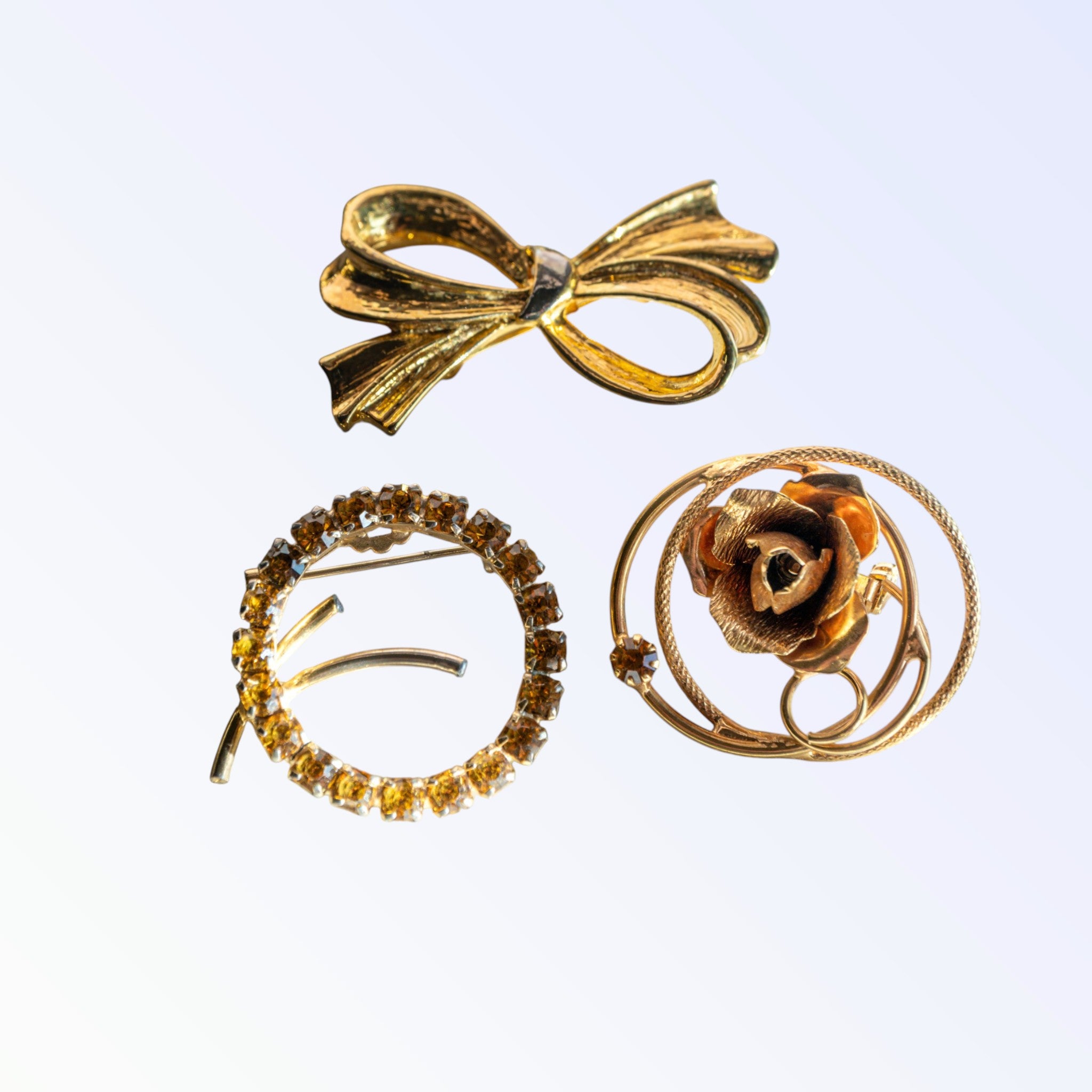 The bow is one of the most enduring and beloved motifs in jewelry history, and for good reason: it is simultaneously feminine, festive, and timeless. In the warm golden tones of yellow and topaz, these mid-century bow brooches are particularly radiant — they carry the warmth of autumn light and the cheerfulness of a beautifully wrapped gift. Topaz-colored rhinestones were enormously popular in the mid-20th century, prized for their warm, amber-like glow that flatters virtually every skin tone and complements a wide range of wardrobe colors. This collection is a celebration of that golden warmth.