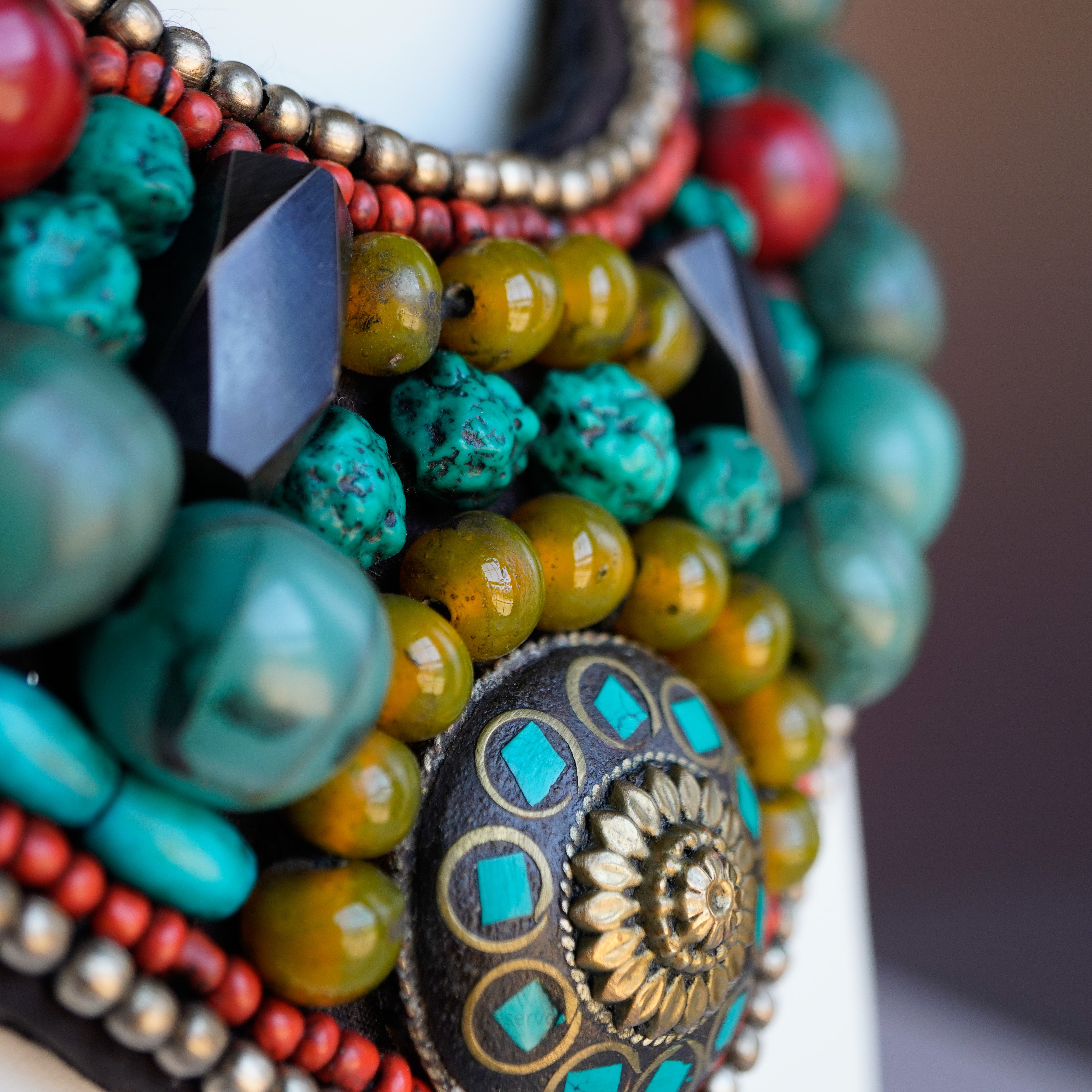 - Style: Hand-stitched beaded bib necklace (Tibetan / Bohemian / Artisan)