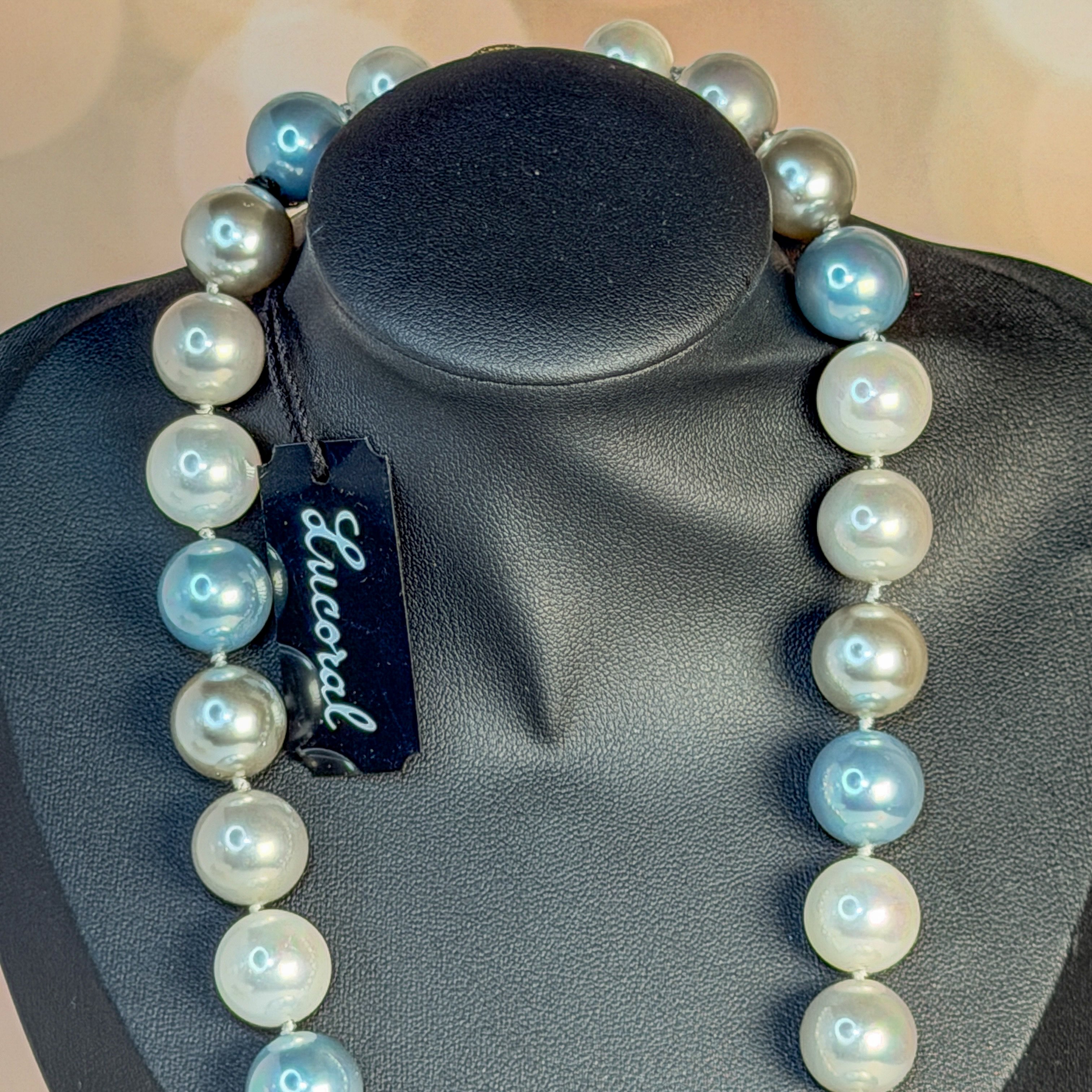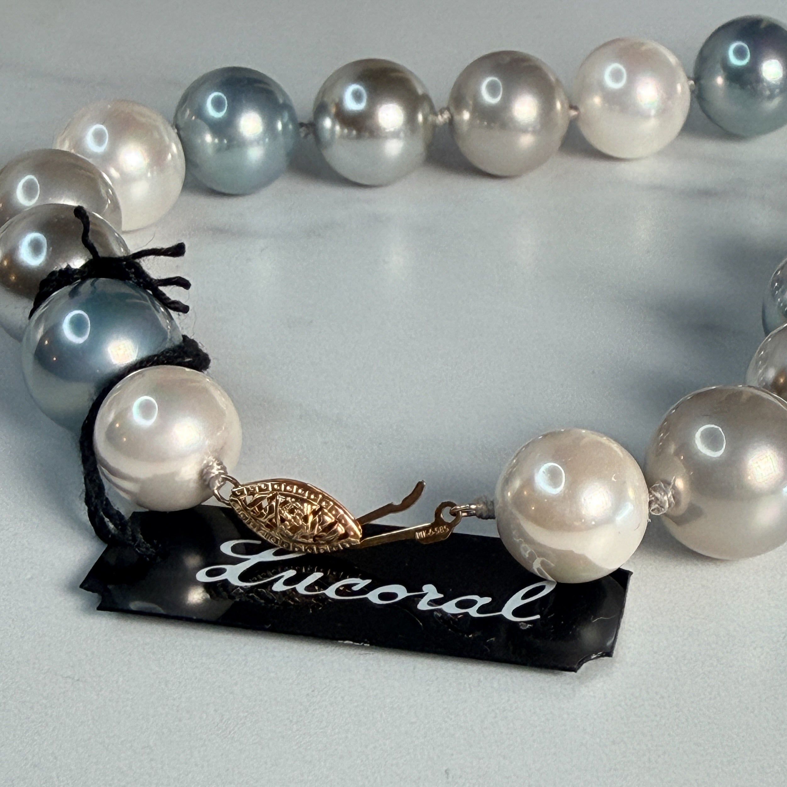 Performance / BenefitsWearing this pearl necklace elevates any outfit—from a little black dress to a tailored blazer—thanks to its versatile color palette and refined glow. The graduated pearls create depth and dimension, while the 14K gold clasp provides reliable security and lasting durability. With its original tag intact, this piece remains a collectible example of Lucoral craftsmanship and timeless luxury.