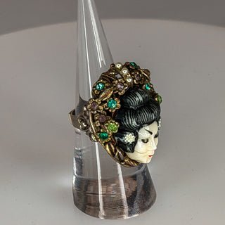 Rare Vintage Geisha Mask Ring with Rhinestones